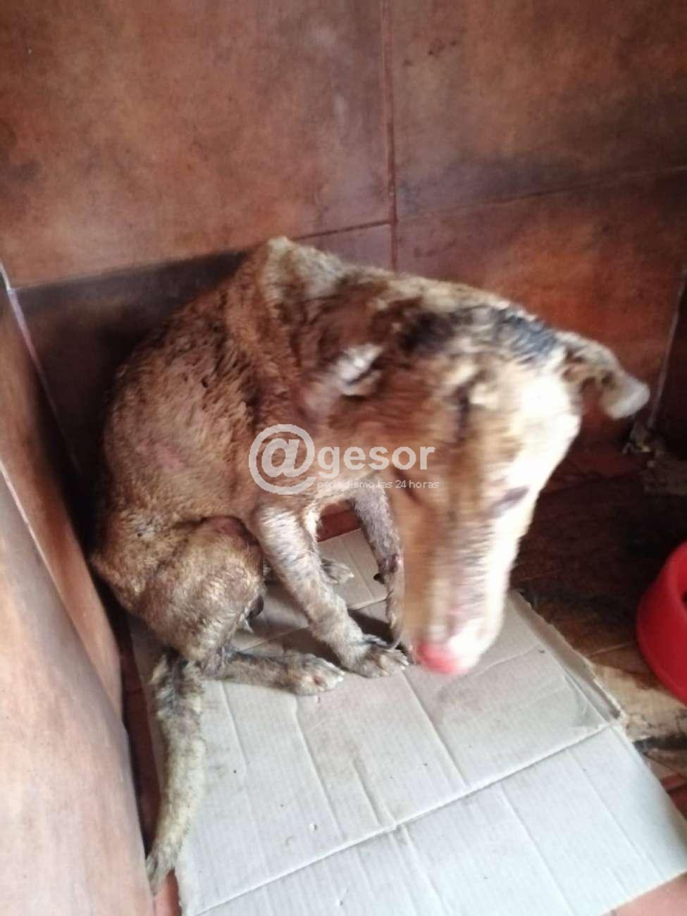 En tanto la protectora de animales San Francisco de Asís agrega en su muro de Facebook “cuando llegó el móvil policial con este inocente, ya se encontraba en la veterinaria una compañera esperándolo para ver la situación, cuando lo bajaron y entró para atenderse, inundó literalmente toda la clínica con olor a gas oil, olor inconfundible y que abrazo a todos los que estaban ahí. Ese ya fue el indicio de una hipótesis: creemos que podría haber sido rociado con gas oil y luego habría tomado fuego no sabemos cómo... Está bajo medicación: antiinflamatorios, antibióticos para evitar infecciones, analgésicos varios entre ellos Tramadol, suero.. tuvo la voluntad de tomar agua lo que es un gran logro. Está internado y con riesgo de vida no solo por las quemaduras sino también por intoxicación con el combustible. Si bien las lesiones no son muchas ni muy grandes tiene varias zonas quemadas.
