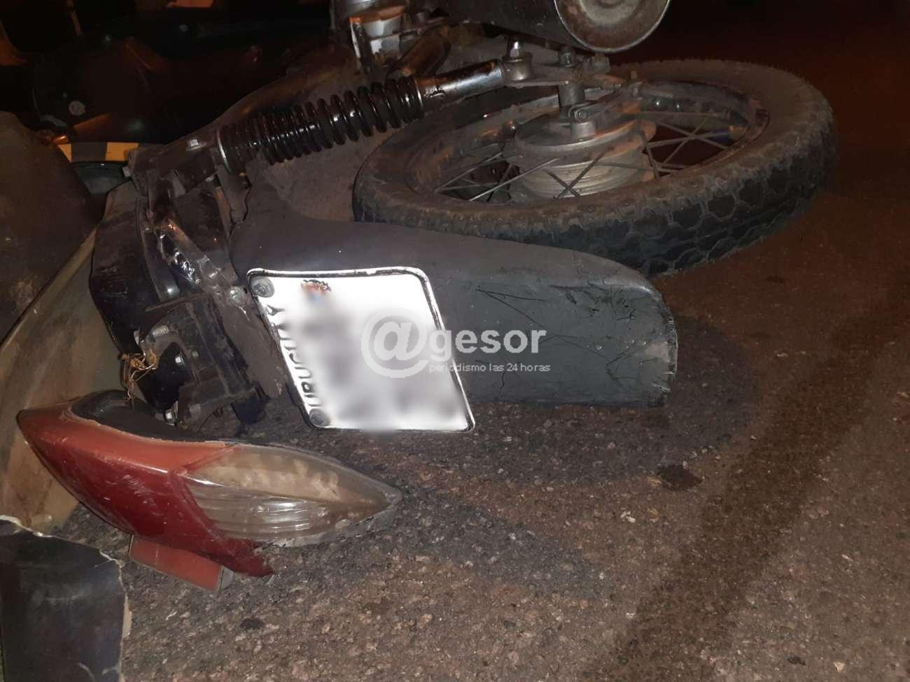 Personal de Unidad Respuesta y Patrullaje concurre al lugar, ubicando a un masculino caído en el pavimento debajo de un camión estacionado por calle Magnone, contra el cual habría impactado; tratándose de un adolescente de 15 años. El mismo se desplazaba en moto Winner 110 cc; la que resultó con daños. Ambulancia de EMS procedió al traslado del lesionado a centro asistencial; a posteriori se establece diagnóstico: "trauma maxilo facial y frontal".