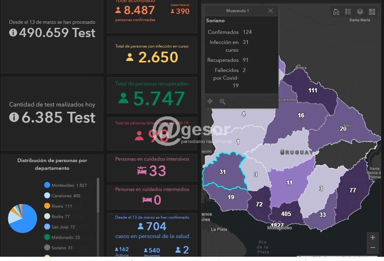 Récord de casos diarios a nivel nacional con 390, tres de ellos son de Soriano que sigue bajando la cantidad de activos ahora son 31