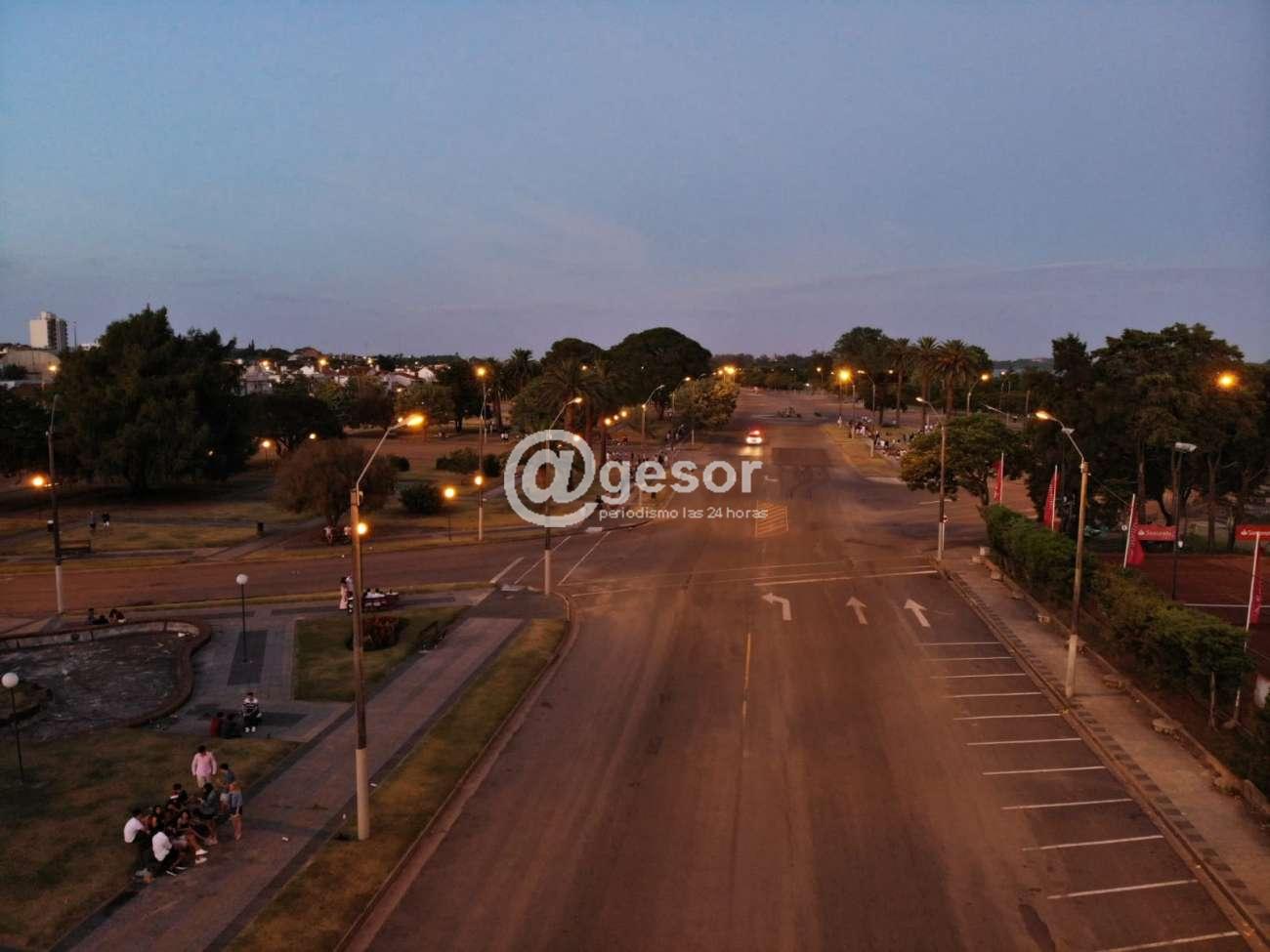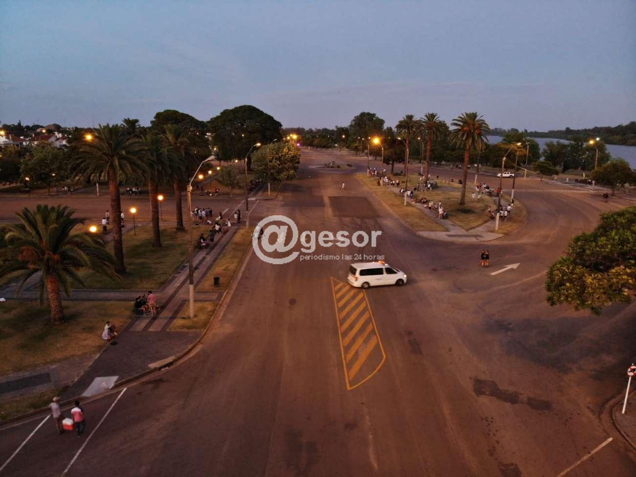 Paralelamente el incesar pasaje de móviles policiales quedó reducido básicamente a esta hora al del GRT y motos, con un recorrido mucho más acotado en parte De la Ribera, mientras que en la zona vehicular el movimiento era prácticamente nulo.