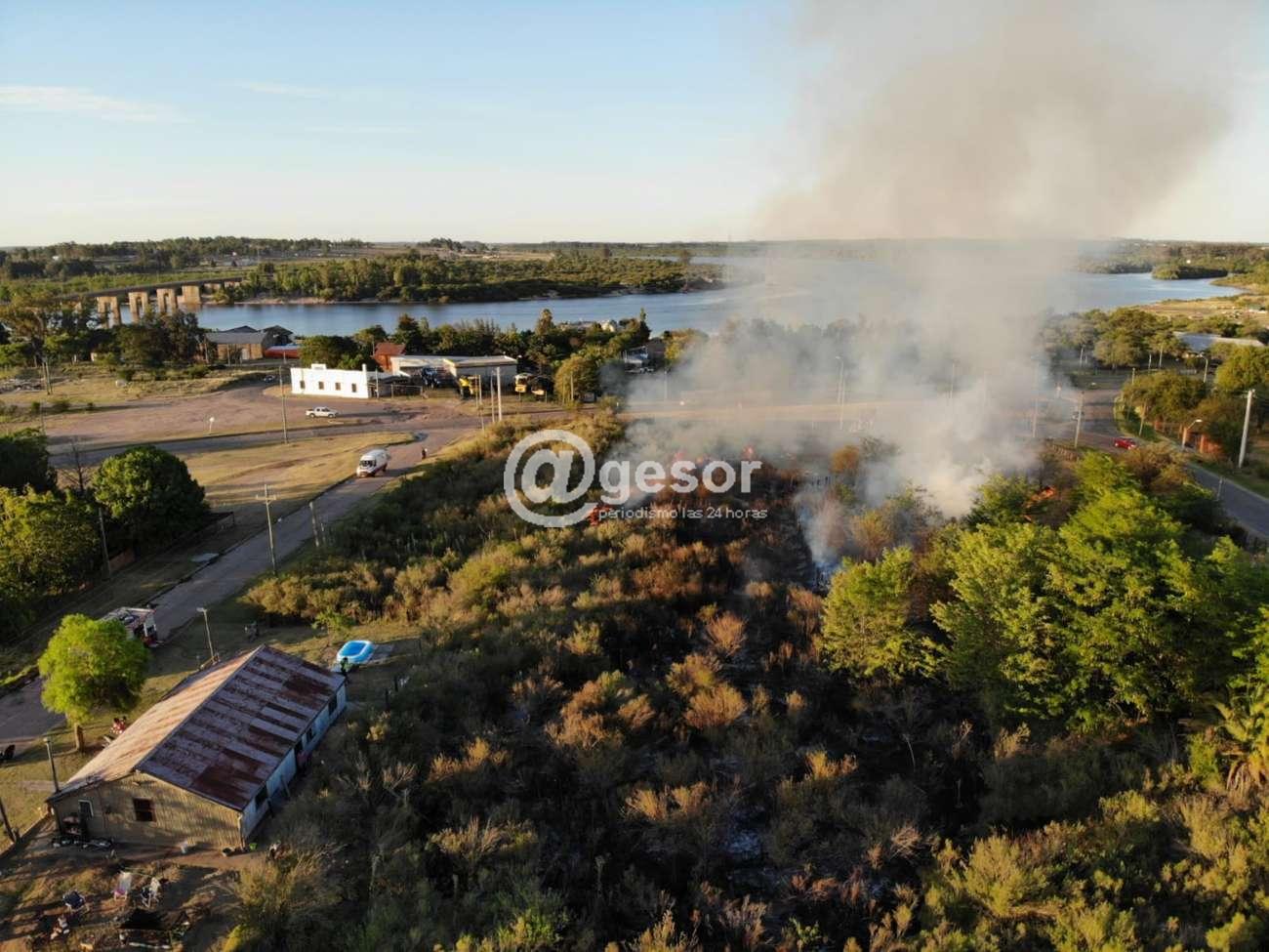 Próximo a las 19.30 horas, se solicitó la presencia de dotación del destacamento de Bomberos de Mercedes, ante la existencia de foco ígneo generado en zona de pastizales altos y árboles en predio de AFE ubicado en los accesos al barrio 33 Orientales de la capital sorianense, lográndose controlar antes que llegara a afectar a finca ubicada en el lugar.
