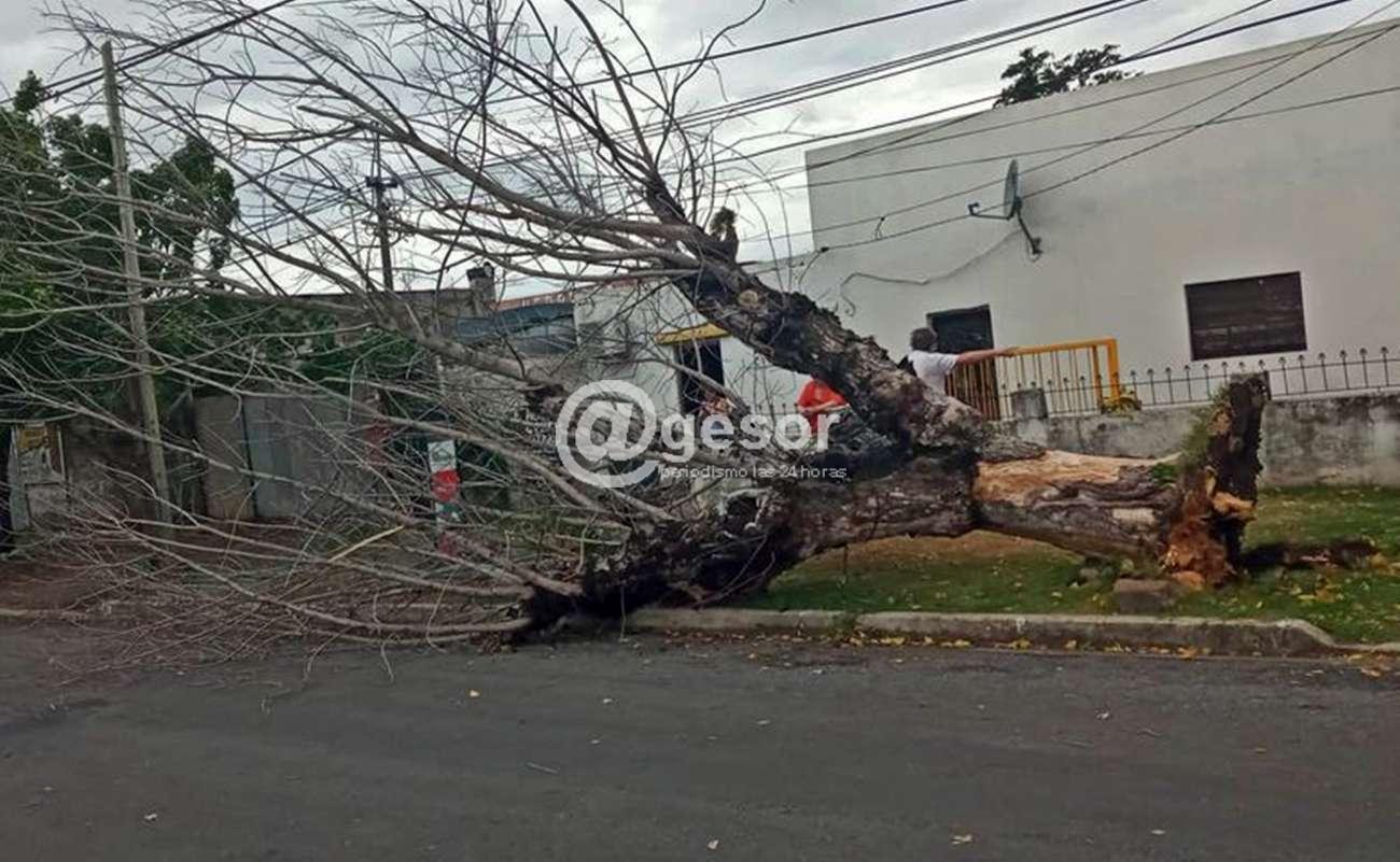 Vecinos de la zona informaron este domingo a @gesor que funcionarios de la comuna a través que se le solicitó al edil Raúl Morossini estuvieron cortando gajos del árbol caído y continuarán trabajando este lunes para culminar con el corte del árbol de considerable tamaño.