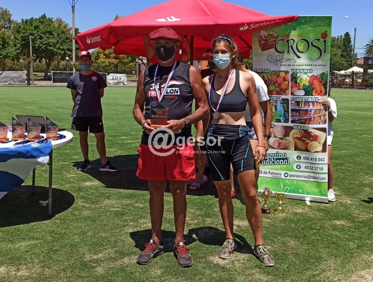 Aquí algunas de las imágenes de la llegada, de las zonas que se crearon para el material que iban utilizando entre prueba y prueba y la posterior ceremonia de premiación, en la que también hubo reconocimientos para el atleta de mayor edad con 70 años, y para los socios a nivel masculino y femenino que tuvieron mejor participacion, en este caso fueron Gabriel Priano e Ynela Aire respectivamente..