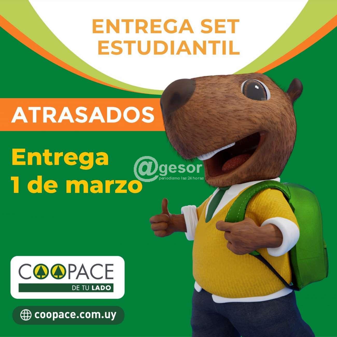 “Coopace está impulsando una promoción con descuentos en comercios adheridos, sumándolo a “La Vuelta a Clases”, vamos a promocionar en las redes sociales hasta el 15 de marzo, descuentos de hasta e 25% en lo que son útiles escolares y libros para los socios de Coopace solamente exhibiendo la cédula de identidad y diciendo que son socios de Coopace. En todas las localidades donde está Coopace hay una papelería o comercio adherido, en el cual pueden gestionar ese descuento que estará vigente hasta mediados de marzo. Los locales adheridos a la promoción son: Todo útil (Fray Bentos) 20%, Casa Naranja (Fray Bentos) 20%, Papelería Clips (Young) 25%, Zoom Papelería (Mercedes) 25%, Papelería Ohana (Dolores) 20%, Bertinat Papelería (Paysandú) 20%, Piccolina (Guichón) 25%, Salón Gamalu (Cardona) en compras más de $ 1.000, 20%”.