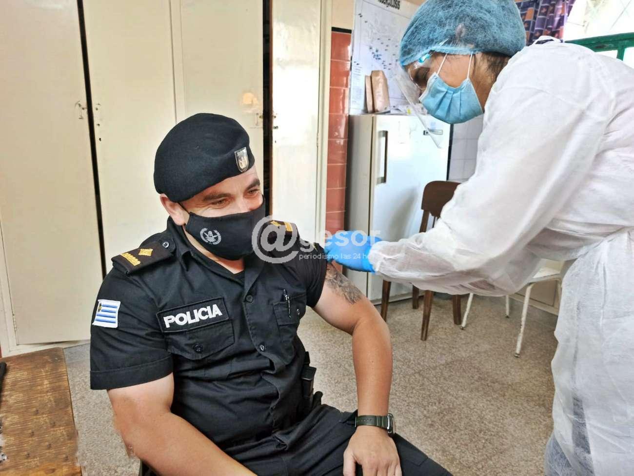 Imágenes de la primera jornada de vacunación: Desde el Director de la Unidad 24 del INR, el Jefe del GRT, la Subdirectora de UTU, docentes, policías, militares, de Prefectura y funcionarios de centros de INAU cumplieron