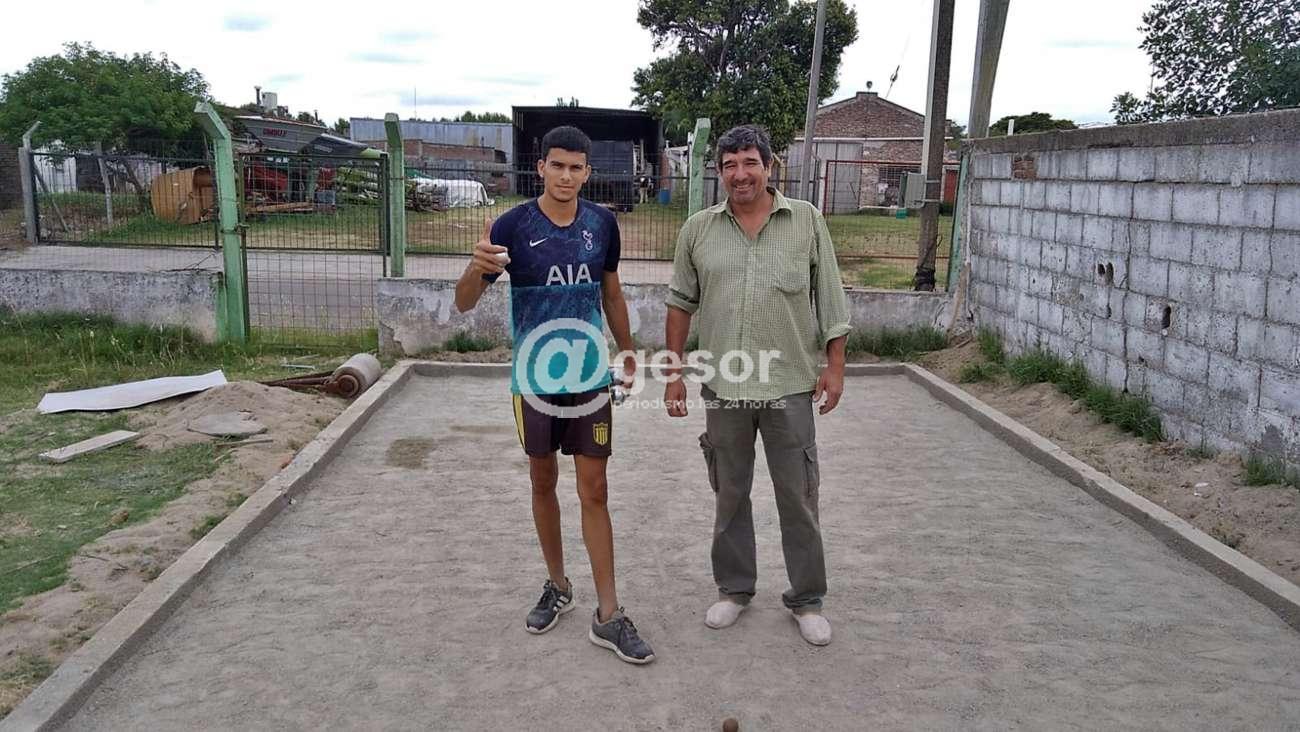 Washington Geymonay, un socio de Las Tunitas que se acercó a la institución para donar 20 litros de pintura jugó la primera ronda a modo de torneo experimental con las bolas de Petanca proporcionadas por el tesorero de la Federación Uruguaya de Bochas, Marcelo Expósito.