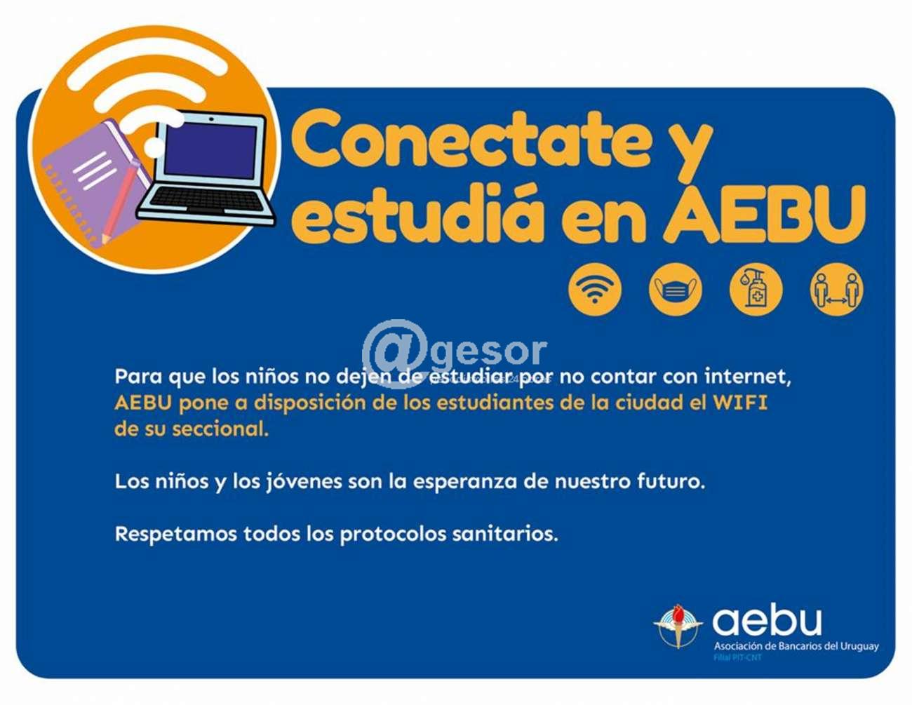 La Asociación de Empleados Bancarios del Uruguay (AEBU) liberó su Wi FI de la sede de Mercedes para posibilitar la conectividad de los estudiantes que lo necesiten para cumplir con sus actividades.