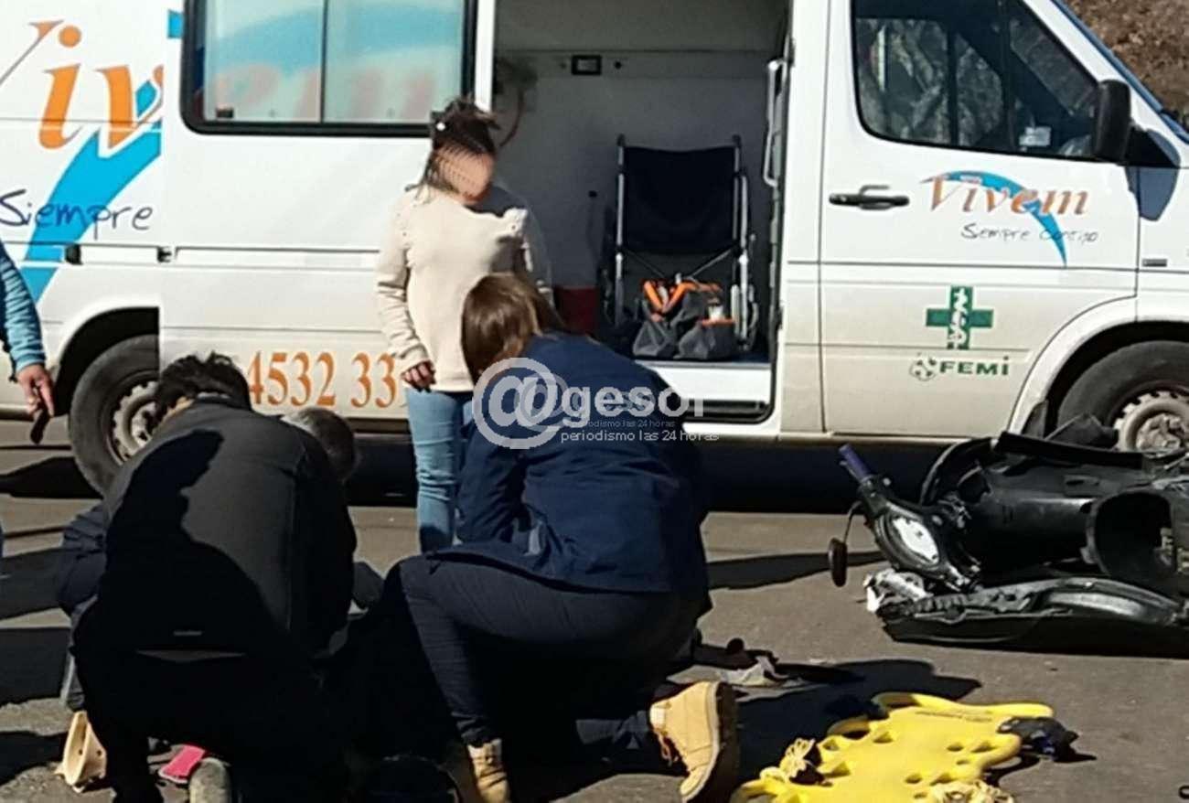 Como acompañante del motociclista viajaba una femenina y un menor de 2 años, los que al caer al pavimento quedan en el lugar; siendo asistidos y trasladados por ambulancia Vivem a centro asistencial; certificándosele a la femenina: “paciente politraumatizada por siniestro de tránsito en moto. Cae sobre costado derecho mismo impacto a nivel de miembro inferior derecho”.