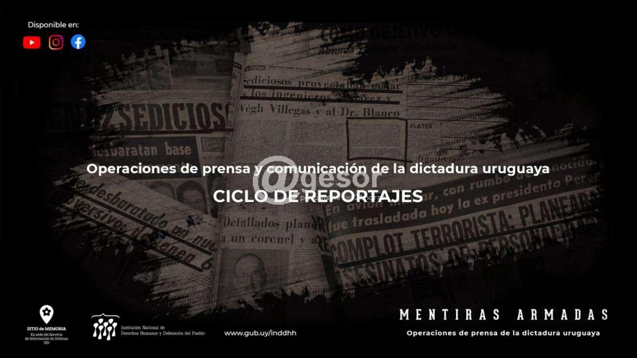 El Sitio de Memoria ex SID de la Institución Nacional de Derechos Humanos y Defensoría del Pueblo (INDDHH) presenta el reportaje “Mentiras armadas”, sobre una de las más complejas y arriesgadas operaciones psicopolíticas orquestadas por la dictadura en la llamada “lucha antisubversiva”. El reportaje se complementa con un breve retrato del periodista Enrique Rodríguez Larreta, una de las víctimas, luego denunciante y cronista de los hechos. El ciclo cierra con dos cortometrajes en los que especialistas y periodistas analizan la comunicación de la dictadura a partir de sus principales herramientas: la censura y la propaganda.