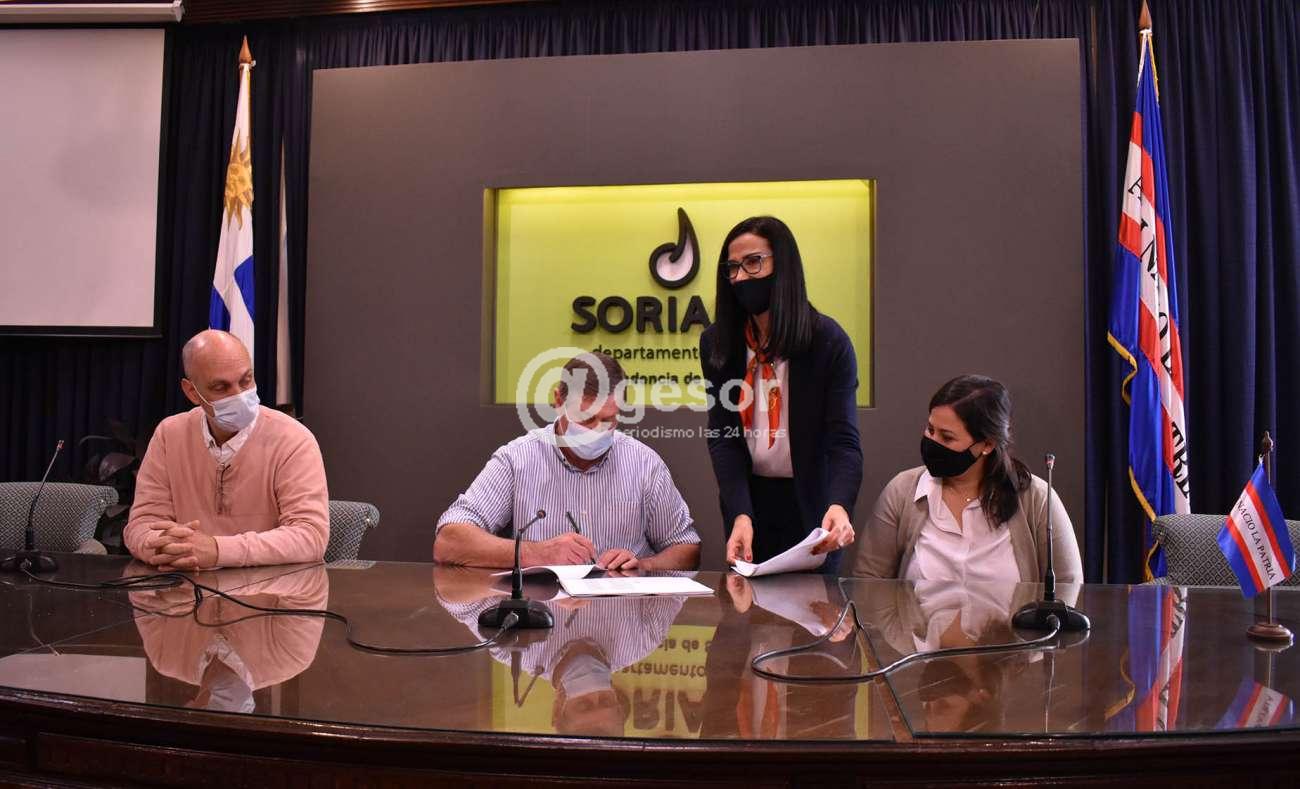 El Intendente de Soriano, Guillermo Besozzi, firmó este viernes el contrato para la ejecución de las obras de recambio total de las luminarias que integran el sistema de alumbrado público de Mercedes y varias localidades del interior.