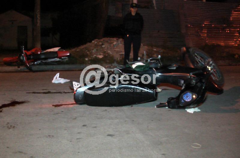 Una fuerte colisión entre dos motos se registró pasadas las 21:00 horas de este jueves, cuando ambos vehículos circulaban en distinto sentido por calle Pozzolo, a la altura de Don Bosco, en pleno barrio Cerro de la ciudad de Mercedes.