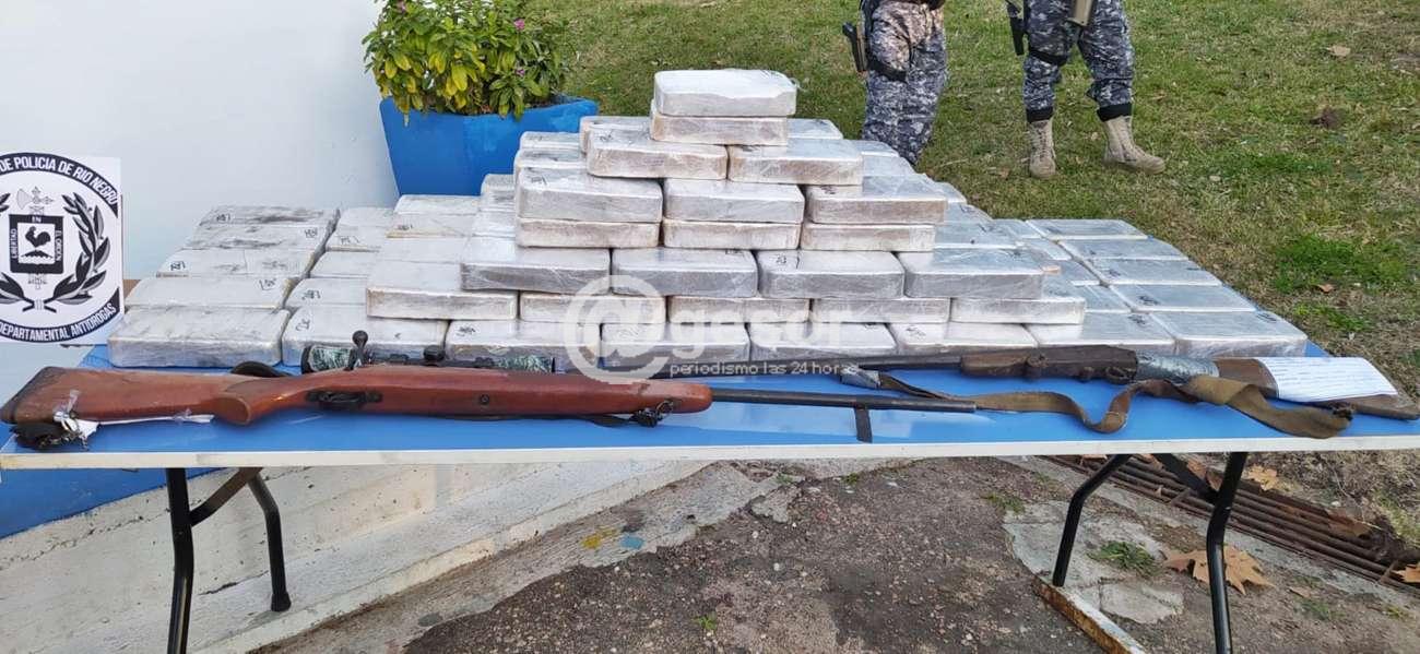 El día 5 de julio siendo la hora 10 y 30 se avistó la camioneta Peugeot matrícula XXX XXX, sobre la cual existía la entrega vigilada antes mencionada, circulando por acceso Norte de Nuevo Berlín, se la ve acceder a la Ruta 24 girar a la izquierda luego por llegar a la intersección con la Ruta 25 girar a la derecha, continuando su marcha por esta Ruta avanzando unos kilómetros para luego ingresar a la localidad Bellaco más precisamente en la calle Sebastián Lloriet, donde los equipos proceden a interceptarla, constatando la presencia en su interior de dos masculinos quienes resultaron ser S.D.R.O. y F.L.F., efectuando registro al vehículo y constatando en un doble fondo la presencia de cuarenta (40) envoltorios con forma de ladrillo conteniendo sustancia estupefaciente prohibida.