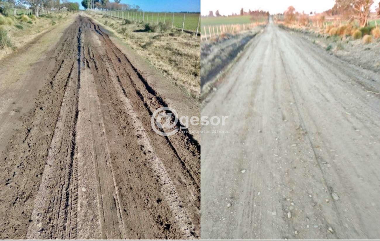 El antes y el después primero en la zona de Egaña, quedó bárbaro el camino largamente reclamado. También compartimos fotos de la zona de la Unidad Cooperaria y recorrimos el Paso Falcon, se está trabajando en la caminería.