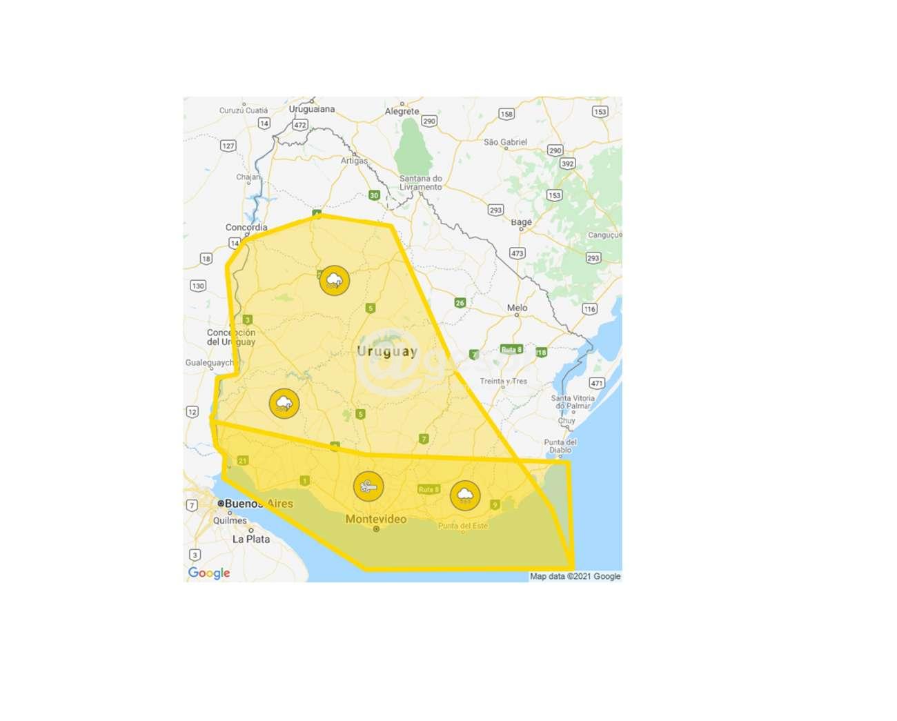 Inumet advierte de la ocurrencia de tormentas fuertes, lluvias y vientos para esta zona del país. De acuerdo al pronóstico emitido a las 21 horas de este domingo persistirá esta situación climática hasta por lo menos las 6,30 horas del lunes.