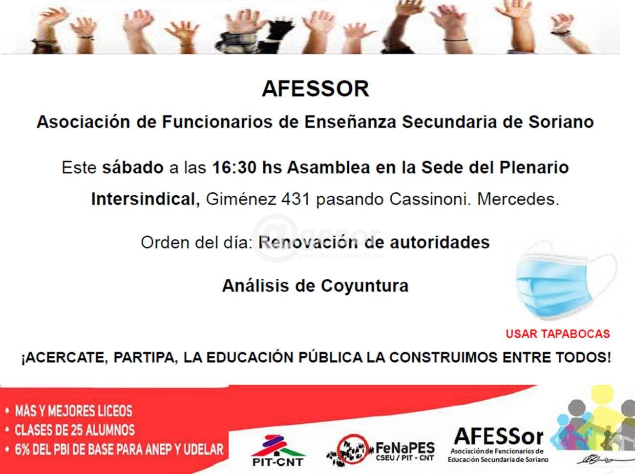 Este sábado a las 16:30 hsAsamblea en la Sede del Plenario Intersindical, Giménez 431 pasando Cassinoni. Mercedes.