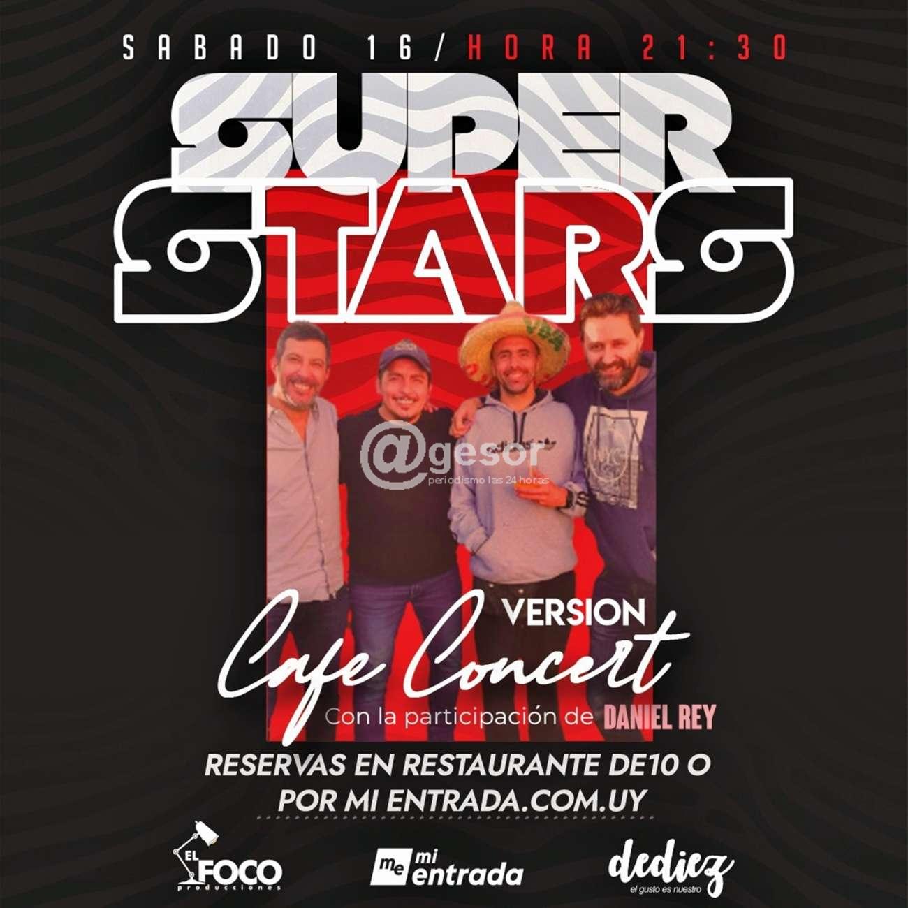 En una Producción de El Foco este sábado 16 en Restaurante D10 frente a plaza Independencia en Mercedes tendrás la oportunidad de disfrutar del show de SUPER STARS en su versión Café Concert, para recuperar la risa que tanta falta nos hace!!! en estos tiempos en que estamos transitando y saliendo de la pandemia.
