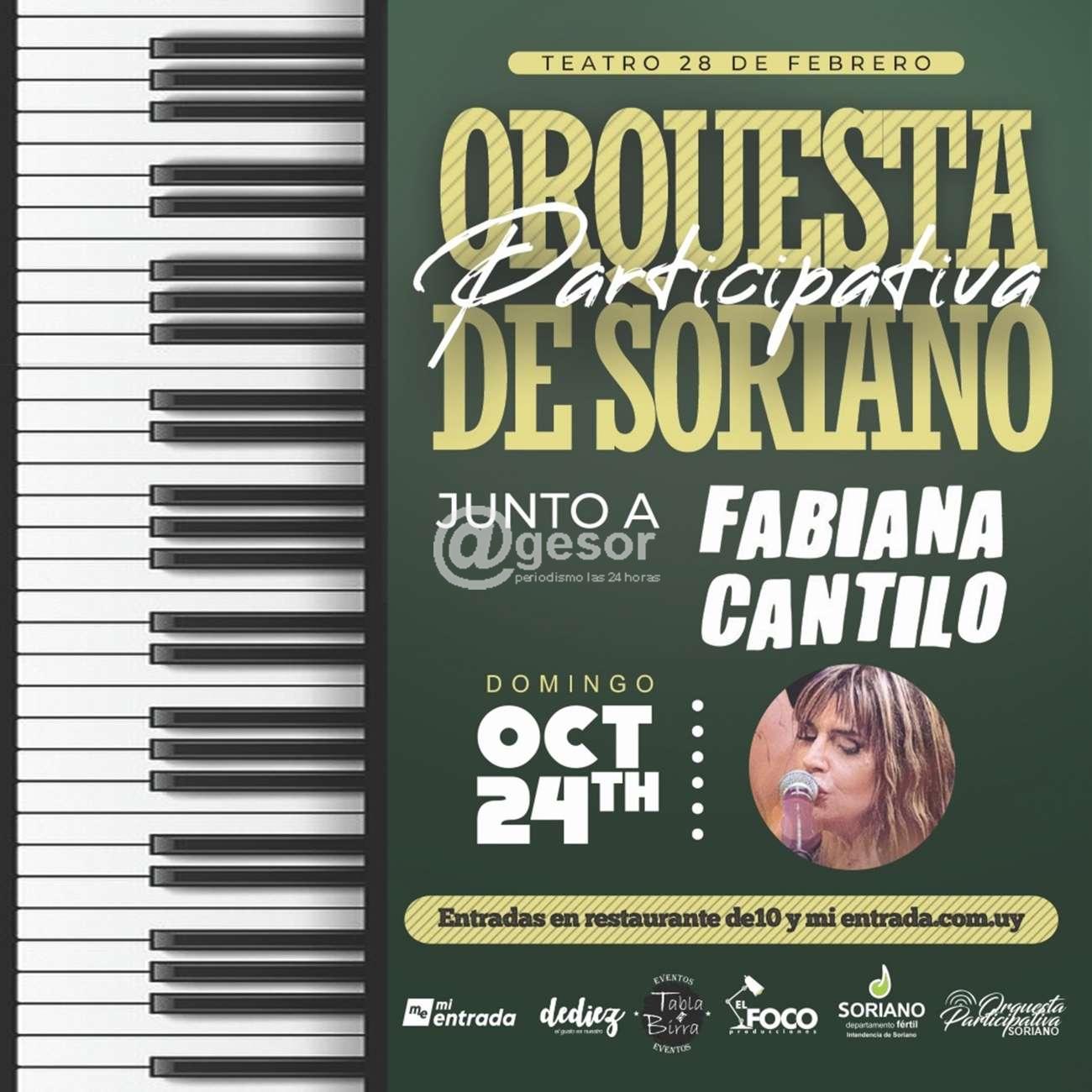 Con la organización de Producciones El Foco y el apoyo de la Intendencia de Soriano, como adelantara @gesor este domingo 24 de octubre estará en Mercedes, en el Teatro "28 de Febrero" la cantante internacional argentina Fabiana Cantilo, brindando su show y en la oportunidad estará acompañada por la Orquesta Participativa de Soriano.