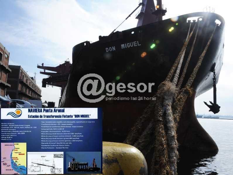 El lunes 10, en los muelles 1 y 2 del Puerto de Montevideo se realizó la ceremonia de abanderamiento y rebautismo del buque y estación de transferencia flotante Don Miguel. La nave “altamente especializada” de bandera nacional será fondeada y amarrada a 16 kilómetros al norte de Nueva Palmira, en el área de trasbordo y complementación de cargas Puntas del Arenal. El buque estación será destinado a la transferencia de graneles.