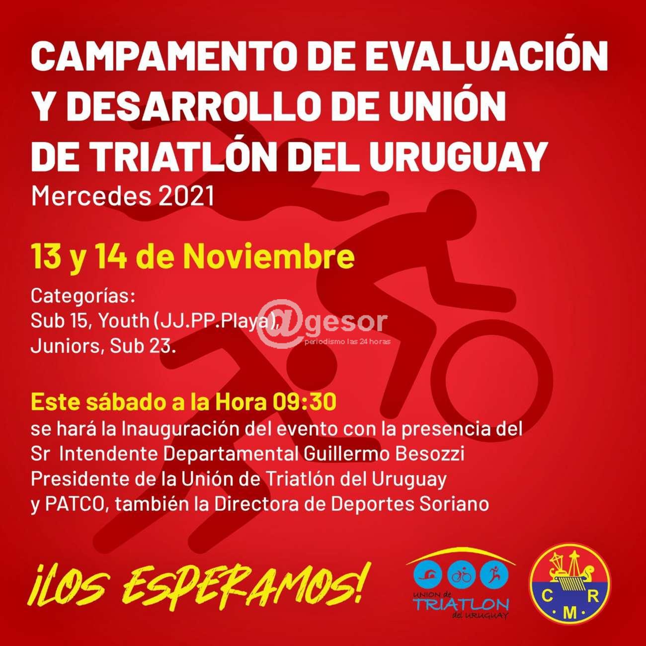 Este sábado a la hora 9.30 se realiza la inauguración del Campamento de Evaluación y Desarrollo de Unión de Triatlón del Uruguay, que se desarrollará durante la jornada de este sábado y domingo, con la organización del Club Remeros Mercedes y el apoyo de la Intendencia de Soriano.