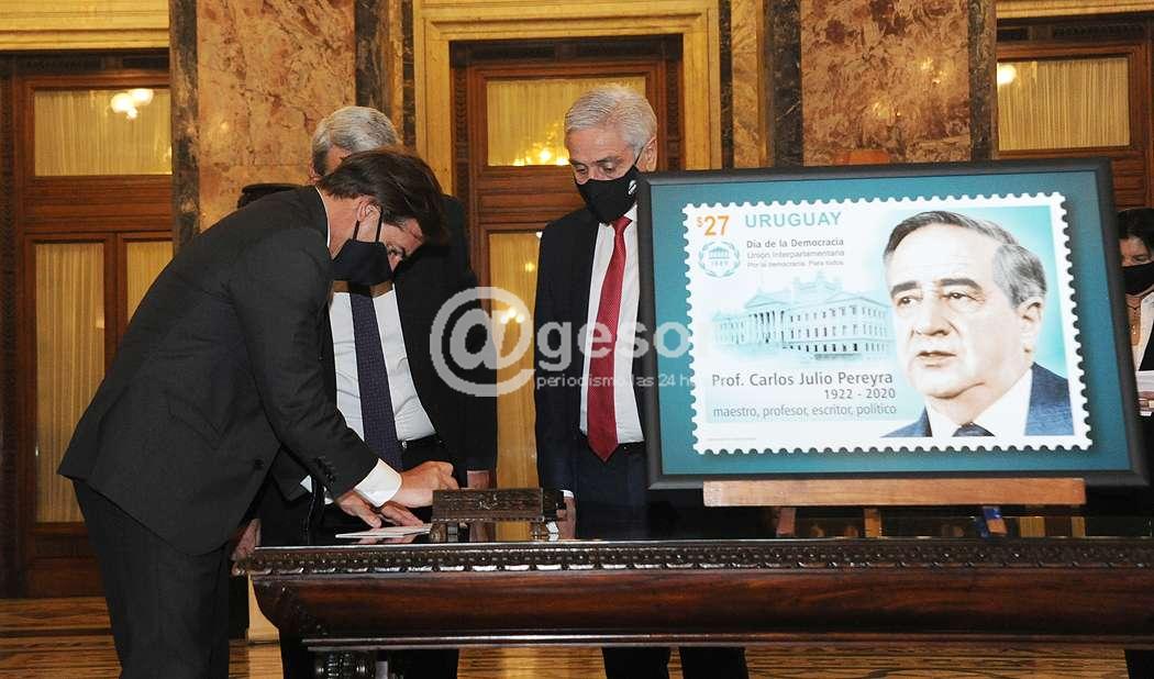 El Parlamento nacional y el Correo Uruguayo presentaron, este lunes 15, el sello postal conmemorativo en homenaje a Carlos Julio Pereyra, actividad encabezada por el presidente de la República, Luis Lacalle Pou. En la oportunidad, la vicepresidenta, Beatriz Argimón, definió al maestro, profesor, escritor y político uruguayo como un gran demócrata y republica.