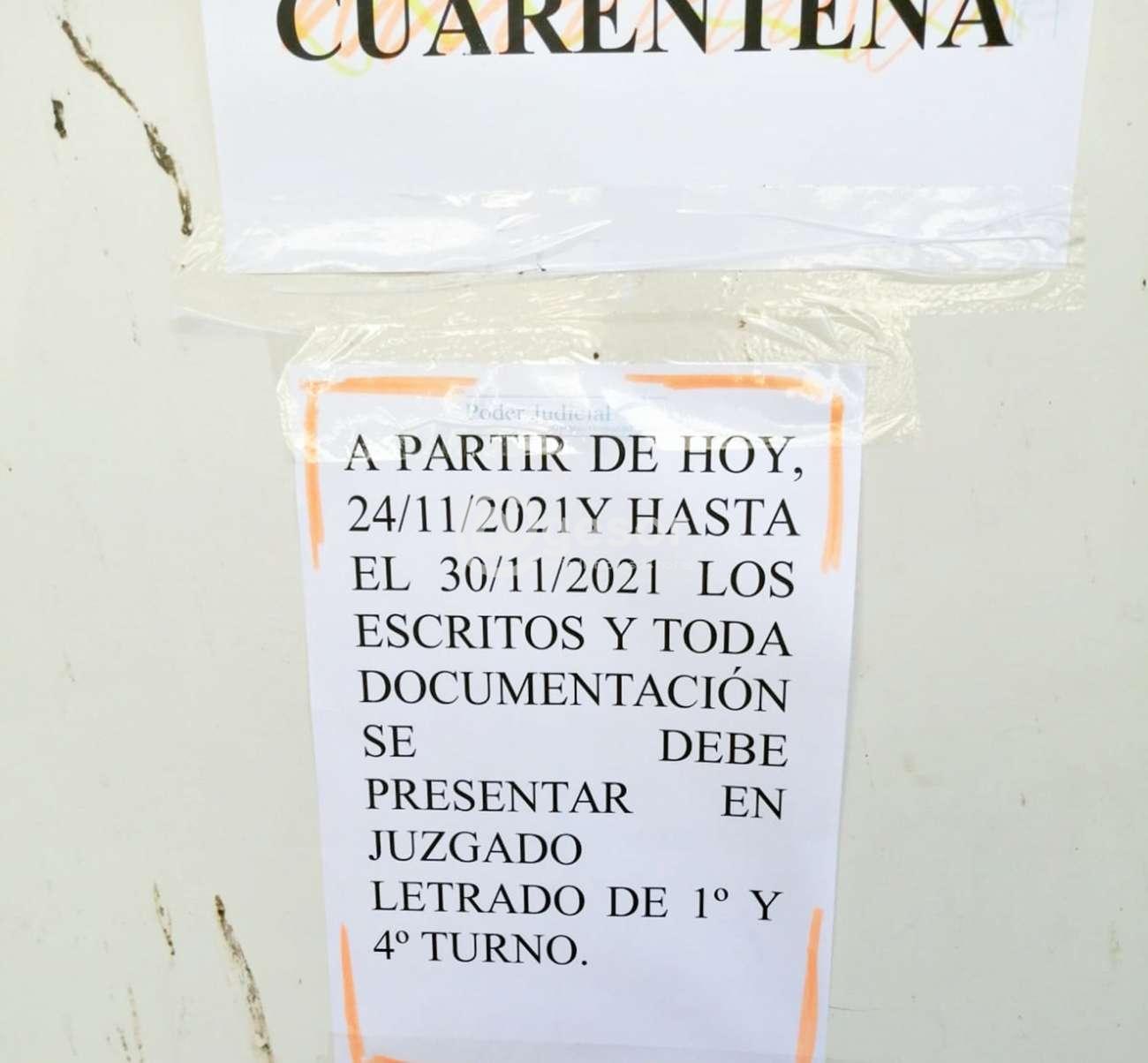 Este miércoles las sedes de los Juzgados de 2º y 3er. Turno de Mercedes, aparecieron con un cartel que expresa "cerrado por cuarentena".