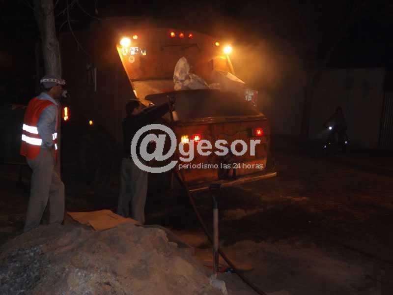 Personal de Bomberos debió prestar ayuda al camión recolector de residuos domiciliarios.