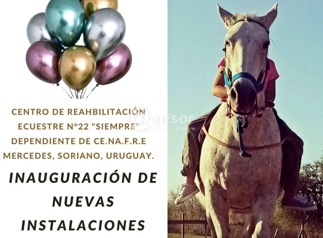 El Centro de Rehabilitación Ecuestre N°22 “Siempre” dependiente del CE.NA.F.R.E, una organización sin fines de lucro dedicada desde hace 15 años a asistir a niños, adolescentes y adultos con diferentes patologías y a su rehabilitación a través de la Equinoterapia, estará procediendo a la inauguración de las nuevas instalaciones, un parque deportivo - recreativo inclusivo y un salón multiuso, dedicado a actividades de Psicología y Psicomotricidad.