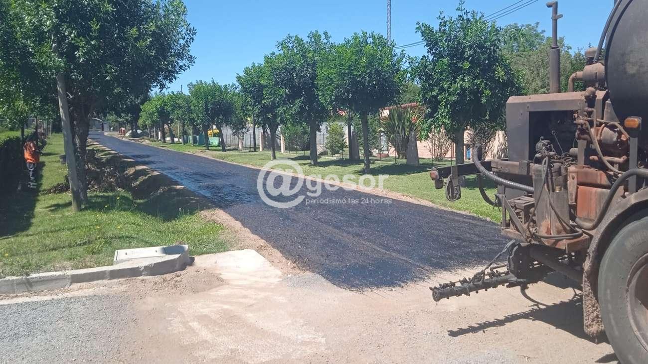 Tal es así que se procedió a aplicar la imprimación asfáltica en las calles Nº 4, Nº 14 y Nº 9, así como las internas de MEVIR 4, las que previamente fueron reacondicionadas en su base con material granular.