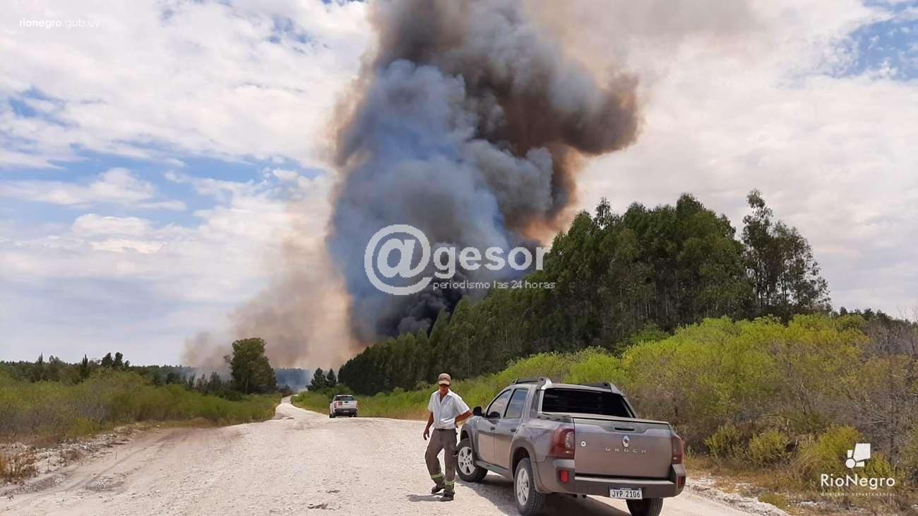 La Intendencia de Río Negro informó sobre el trabajo desplegado en el apoyo brindado a Bomberos en el control “de un incendio de proporciones importante en cercanías de la localidad de Algorta.