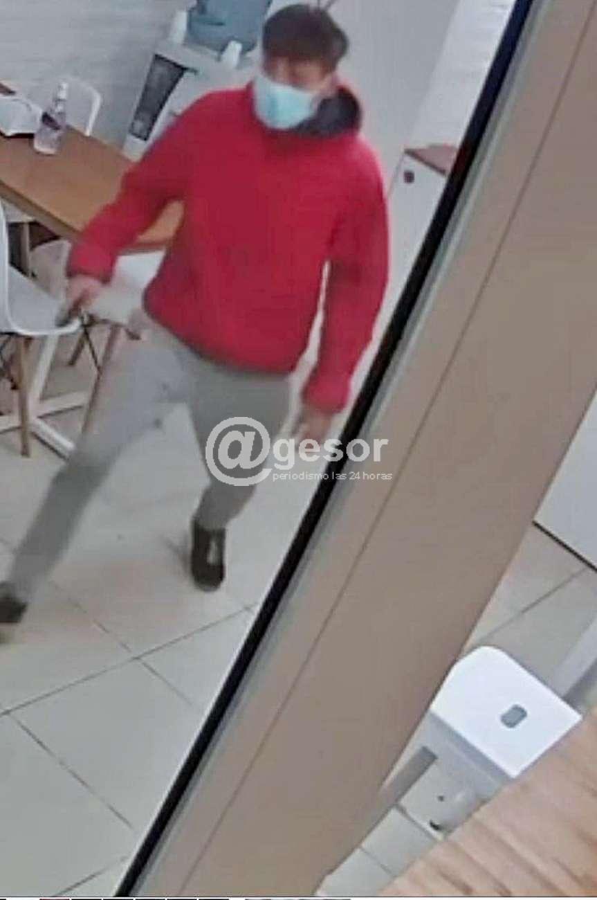 Recordamos que pasadas las 23.00 horas del pasado domingo, ingresó al local de sucursal de Heladería Cavani frente a plaza Artigas de Mercedes por calle Artigas entre  Don Bosco y Casagrande, un joven de campera y tapabocas dirigiéndose al mostrador donde se encontraba una femenina, a la potre titular de la franquicia, atendiendo.