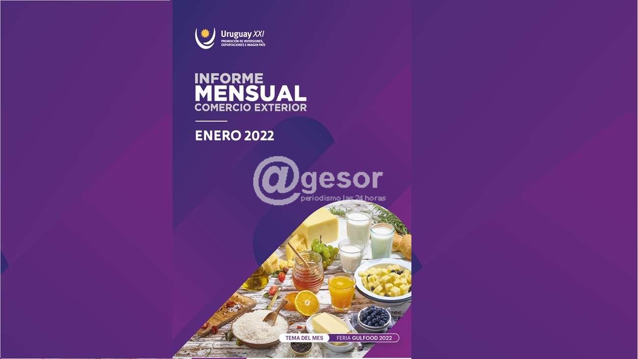 En enero de 2022 las solicitudes de exportación, incluyendo zonas francas, totalizaron US$ 883 millones, lo que implica un crecimiento de 31% en términos interanuales. Las exportaciones de concentrado de bebidas, carne bovina, energía eléctrica, vehículos y subproductos cárnicos son los productos con mayor incidencia positiva que explican la variación mensual. En tanto que los productos lácteos, ganado en pie y el arroz tuvieron un impacto negativo en el mes.