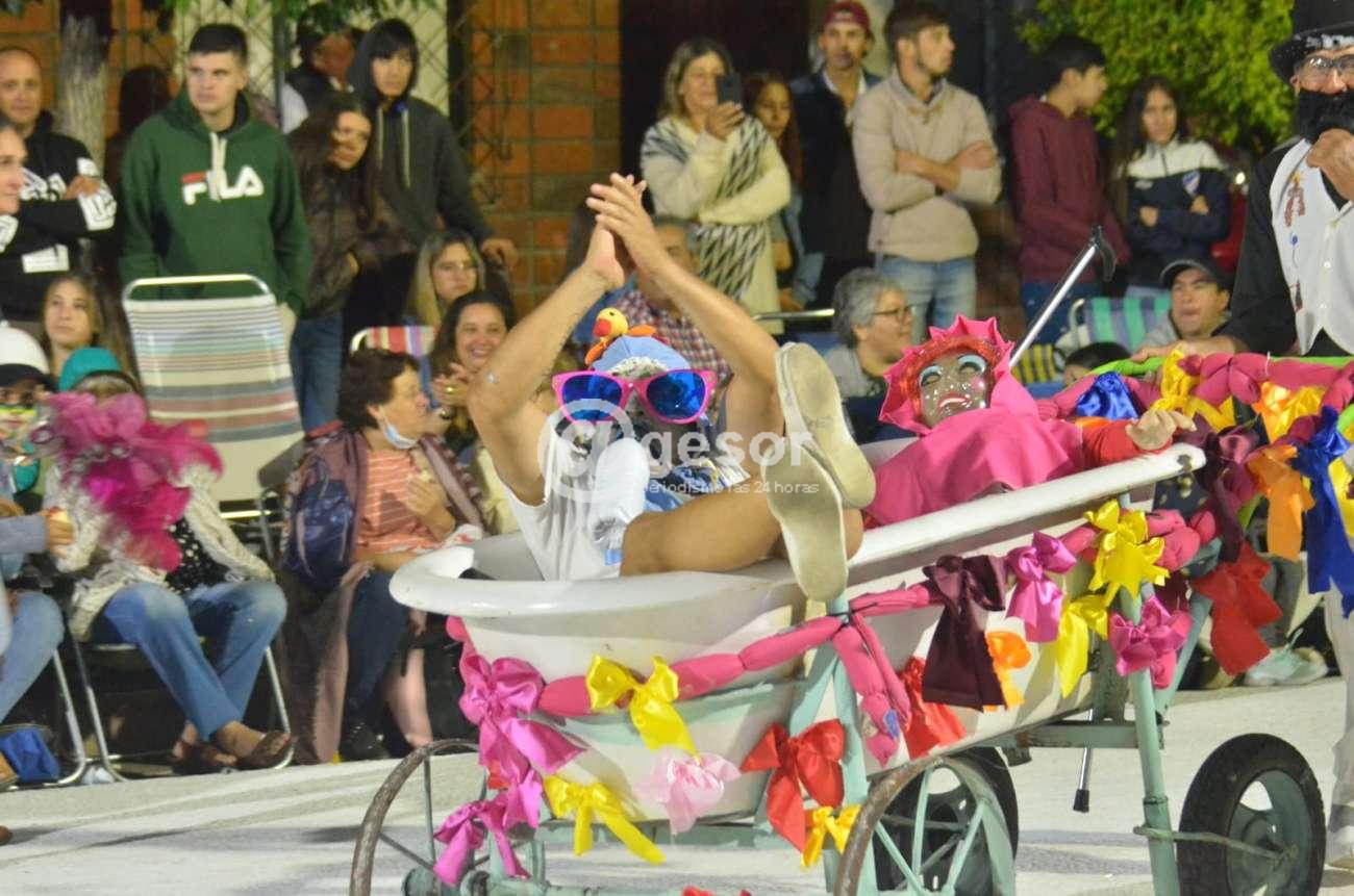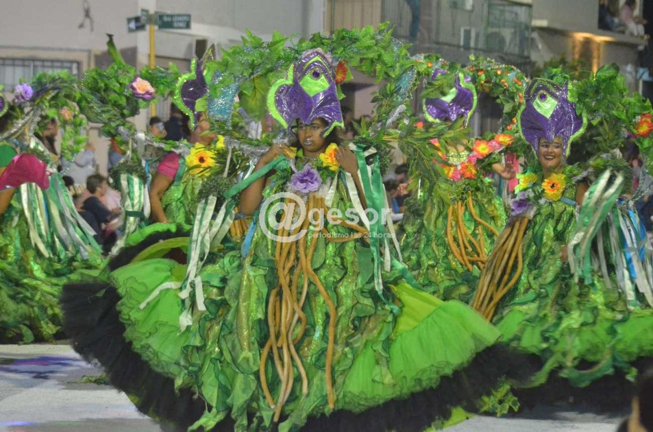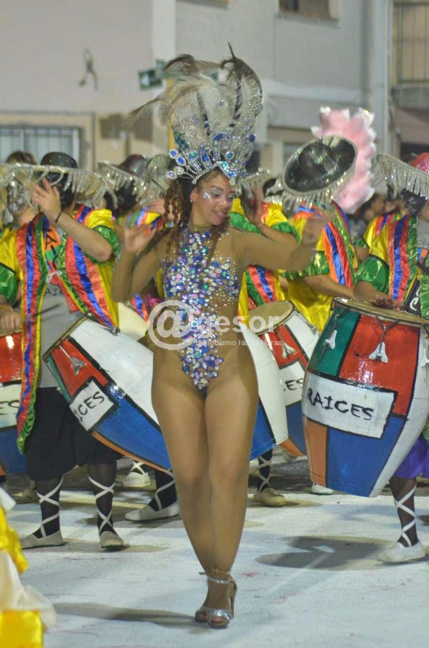 Posterior a los humoristas desfilaron las agrupaciones lubolas, haciéndolo en primer lugar Raíces, desde Mercedes, fundada en 2019, con la dirección responsable de Cristian Moreno y tiene como lugar de ensayo la Manzana 19.