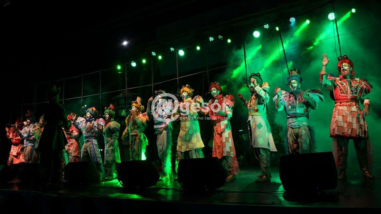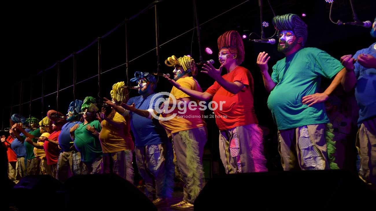 Con su propuesta “Adiós mundo cruel” la murga Sale con fritas se presentó en el escenario de Manzana 20. Dirigidos por Kevin Valvé, la última ganadora del Carnaval mercedario realizó su presentación,  c antando: