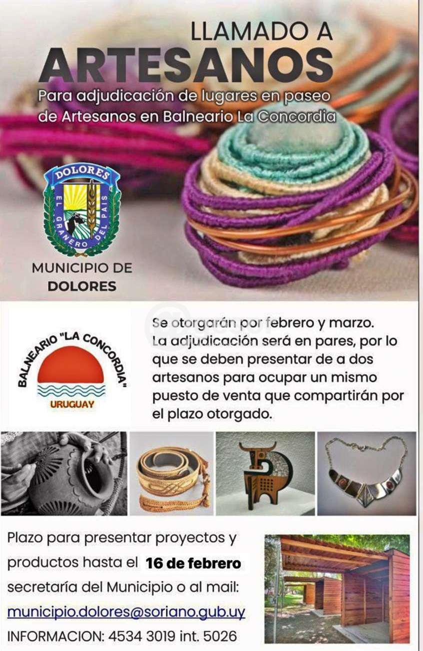El Municipio de Dolores está realizando llamado para artesanos con la finalidad de adjudicación de lugares en paseo de Artesanos en balneario La Concordia.