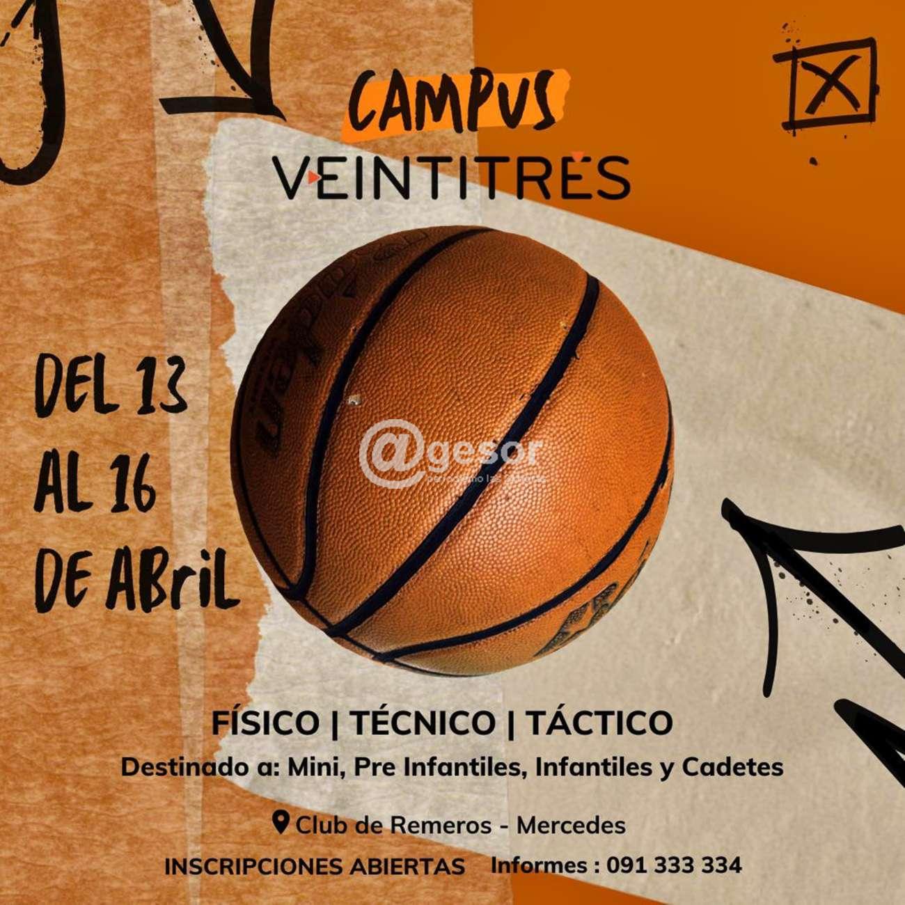 Desde el miércoles 13 al sábado 16 de abril, estará desarrollándose Campus de VEINTITRÉS abarcando aspectos a nivel físico, técnico y tçactico en básquetbol destinado a categorías mini, preinfantiles, infantiles y cadetes.