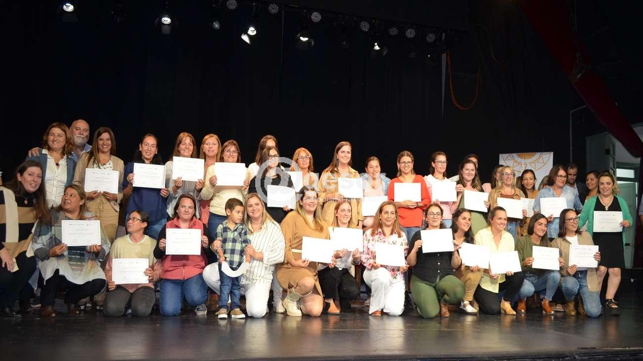 En Teatro 28 de Febrero de Mercedes se realizó la entrega de certificados a las educadoras egresadas en febrero del presente año del curso de Formación Básica en Primera Infancia. Se trata de  34   jóvenes de  Colonia, Río Negro  y  Soriano que  ya se encuentran  trabajando con niños   en  diferentes  Caif o centros educativos.