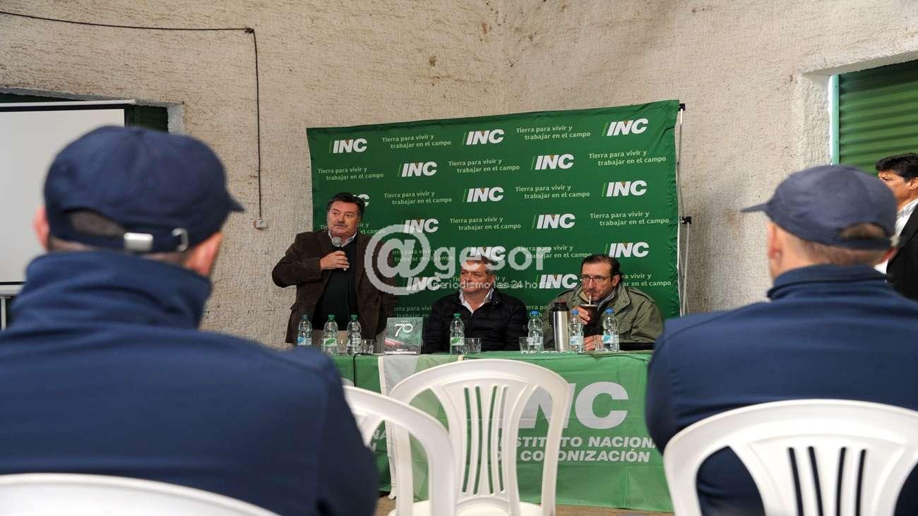 El titular del INC aseguró que en el año 2021 este alcanzó una recaudación de unos 448 millones de pesos, que corresponde al cobro del 87% de los arrendamientos, cifra récord en la historia del organismo. Indicó también que desde 2020 el instituto adjudicó 32.000 hectáreas de las 38.000 pendientes y que cada tres días se entregarán partes de campos.