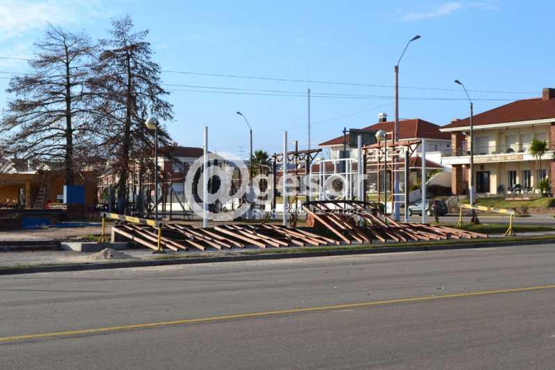 En las últimas horas se inició la colocación de la estructura de madera que contiene pérgolas y figuras, circulares y elípticas por calle Colón de la plaza “Pedro Pasheff” de la rambla mercedaria, más conocida como el "Rosedal".