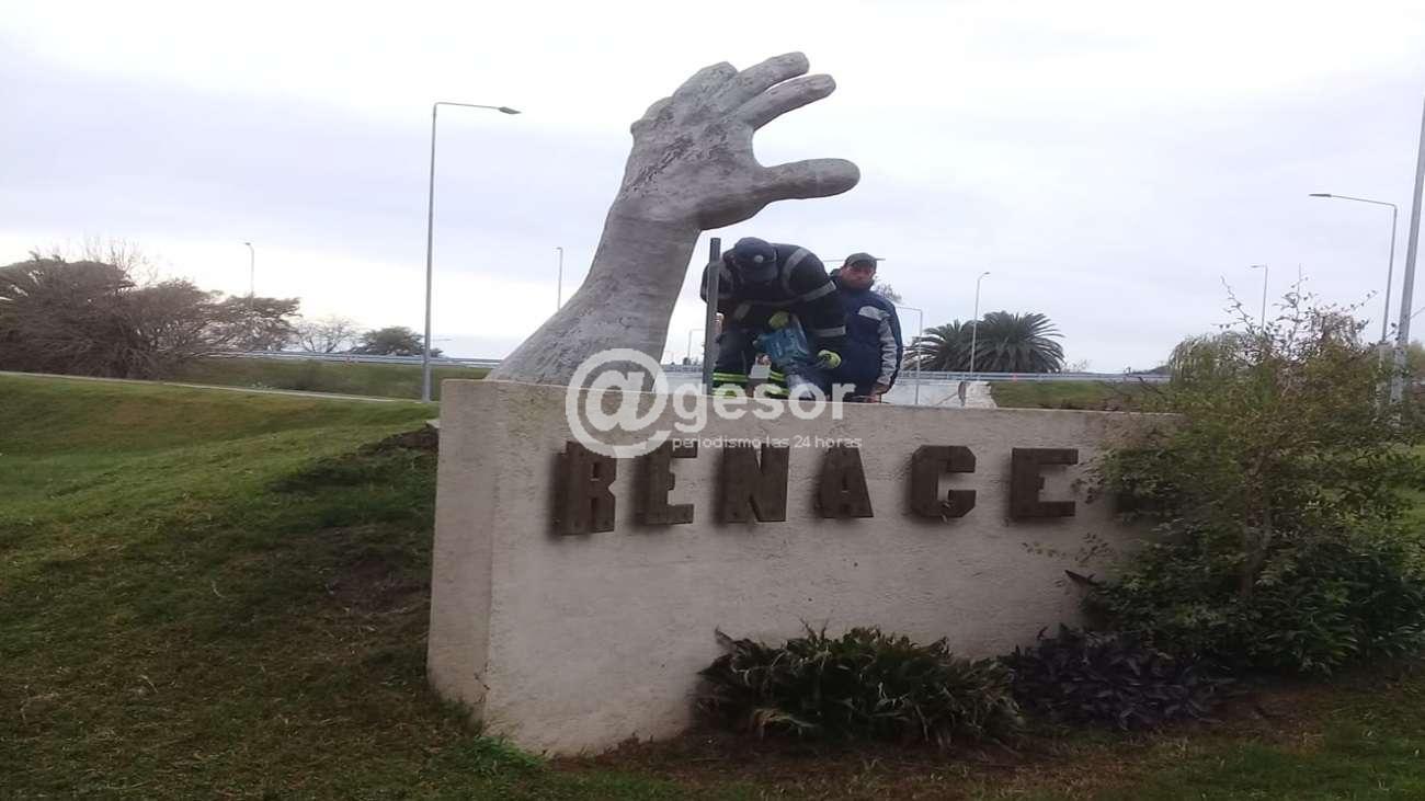 Personal del departamento de Arquitectura procedió al retiro de la escultura de las manos del grupo “Renacer”, situada junto al parque “Bristol” iniciando una intervención para reacondicionar el lugar.