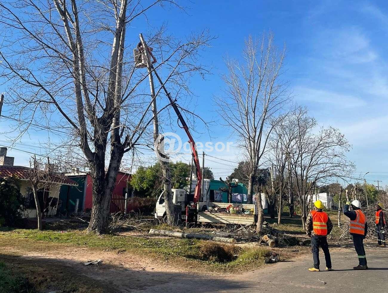 Personal municipal en el día de hoy realizó tala de 4 árboles álamos de gran porte que constituían un riesgo al estar en contacto con los cables de alta tensión de 15 voltios de UTE y además podrían provocar daños edilicios en las viviendas cercanas en caso de caída.