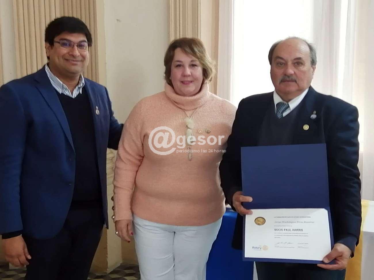 En el cambio de autoridades y celebración del aniversario del Club Rotary Mercedes Oeste, celebrado este domingo en la Sociedad Italiana, se entregaron dos Socios Paul Harris, distinción máxima que recibe un Rotario que realizó este club a los compañeros Félix Bertullo y Jorge Pérez.