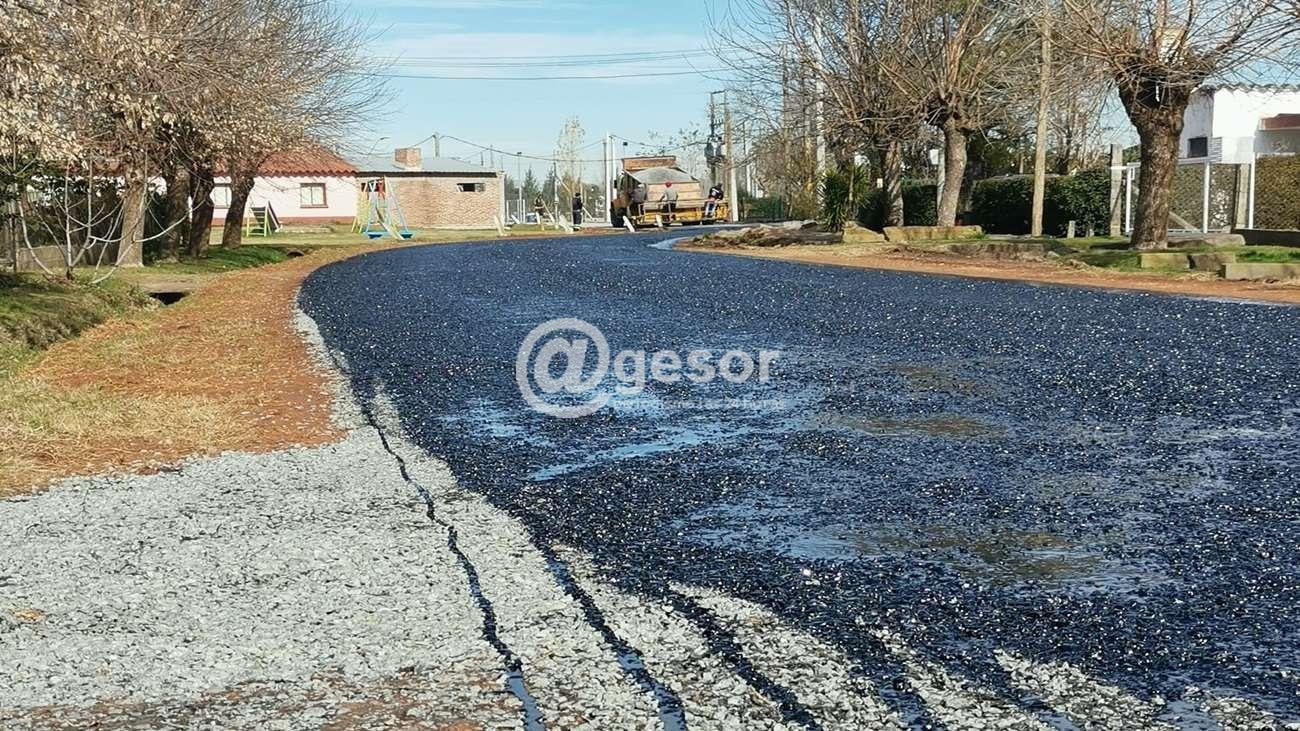 Se destaca la aplicación de un doble riego asfáltico con gravilla en 8 cuadras del complejo de viviendas MEVIR I, tarea desarrollada por el Dpto. de Obras de la comuna.