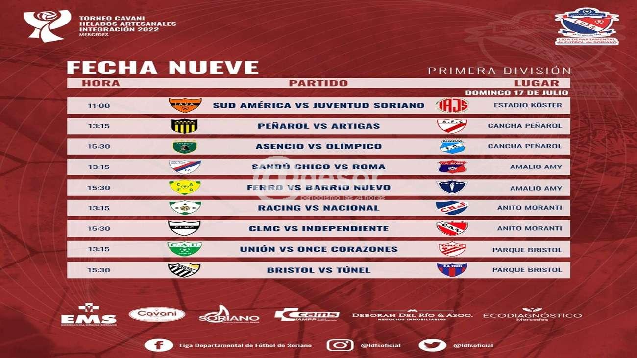 La novena fecha del Torneo integración 2022 del fútbol mercedario tiene como uno de los choques principales del Domingo el partido Sud America vs Juventud Soriano a la hora 11 en el Estadio Koster.