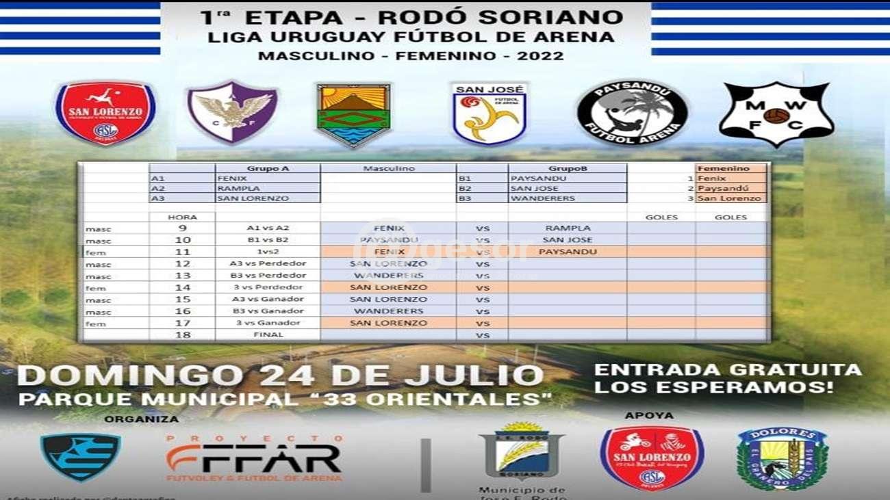 La jornada organizada es por la Liga Uruguaya de Fútbol de Arena y el Proyecto FFAR -que hace unos meses viene trabajando en Dolores- y se inicia a las 9 de la mañana y el último partido está previsto para la hora 18.00.