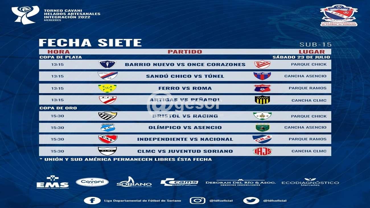 Por la copa Oro juegan todos los equipos 15 y 30, y se enfrentan Bristol vs Racing en el Parque Chick, Olímpico vs Asencio en la cancha de Asencio, Independiente vs Nacional en parque Ramos y CLMC vs Juventud Soriano en cancha de CLMC.