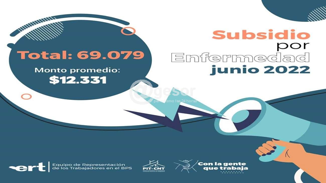 Un informe elaborado por el Equipo en representación de los trabajadores en el directorio del Banco de Previsión Social da cuenta que el organismo pagó 69.079 subsidios por enfermedad en junio pasado. Dicho informe, al que tuvo acceso @gesor agrega que el monto promedio de esos subsidios fue de $ 12.331.