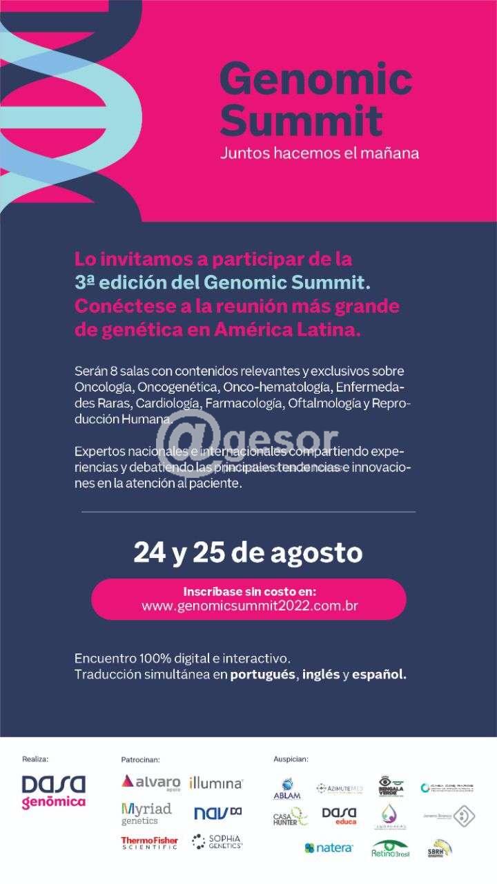 Para participar, alcanza con registrarse a través del sitio web: https://genomicsummit2022.com.br