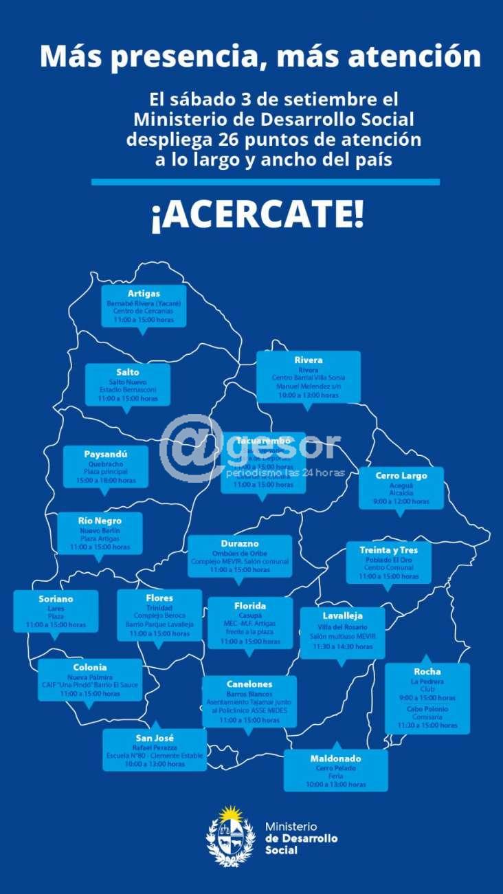 Si bien la población de Lares y Castillo son atendidas mensualmente por el trabajo descentralizado del MIDES en Perserverano, el sábado 3 de setiembre se realizará esta actividad específica en la localidad.