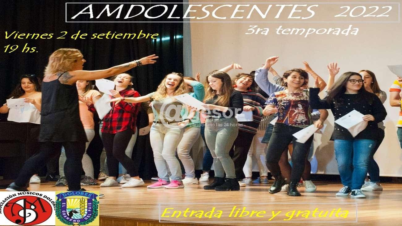 Viernes 2 de setiembre se realiza la tercera  temporada de Amdolescentes. Un espectáculo artístico donde los adolescentes son los protagonistas. Ya está confirmada la participación de alumnos de la Escuela Paso a paso que dirigen Walmar Torres y Gabriela Cornú. Además, solistas y dúos de los Liceos 1 y 2 de Dolores. El cierre estará a cargo de los coros liceales de nuestra ciudad que dirige Joel Gonnet.