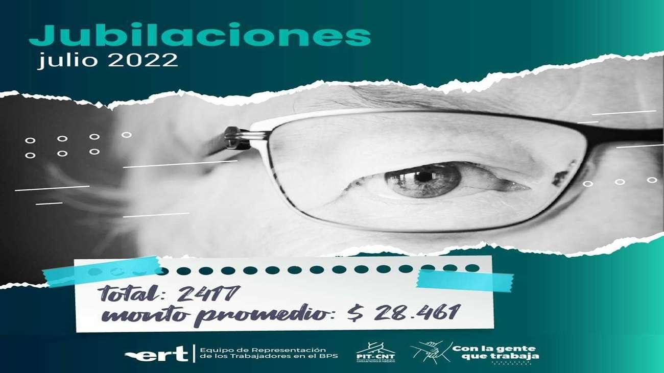 En Julio de 2022 el Banco de Previsión Social pagó 2.417 nuevas jubilaciones con un monto promedio de $ 28.461 cada una. La información fue proporcionada por el Equipo en representación de los trabajadores en el directorio del BPS.